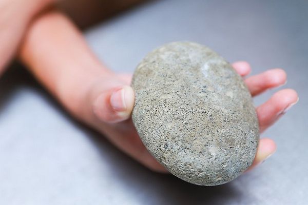 3. سنگ را از آب گرم جدا کرده و آن را روی پوست خود بمالید.